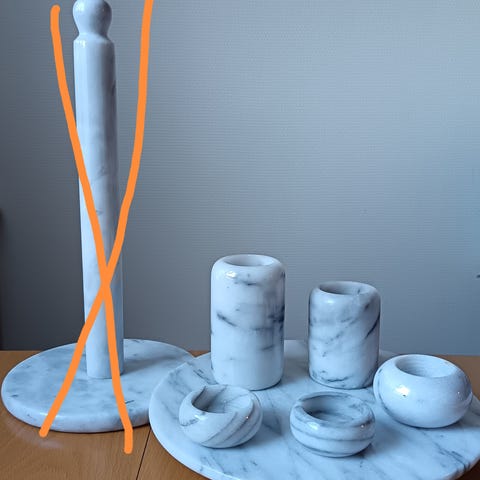 Vähän käytössä ollut marmorinen saippuateline. Vähän pientä kulumaa. Tämä on todella painava.