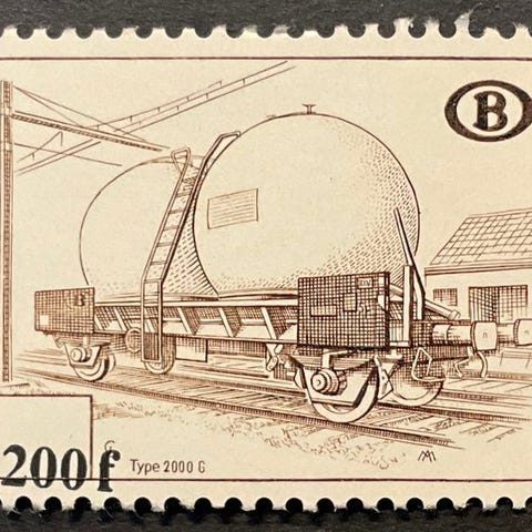 Belgia 1980 - Rautatiepostimerkki 100 fr Vermiljoenpunainen – Keräilykohde