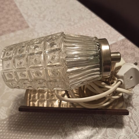 Myydään hyväkuntoinen toimiva vanha seinävalaisin (tiikkiä?). Mukana neljä erilaista etupaneelia. Valaisimen taustalevyn mitat: lev 21,5 ja kork 8,5. Syvyysmitta etupaneelin kanssa 8,5.