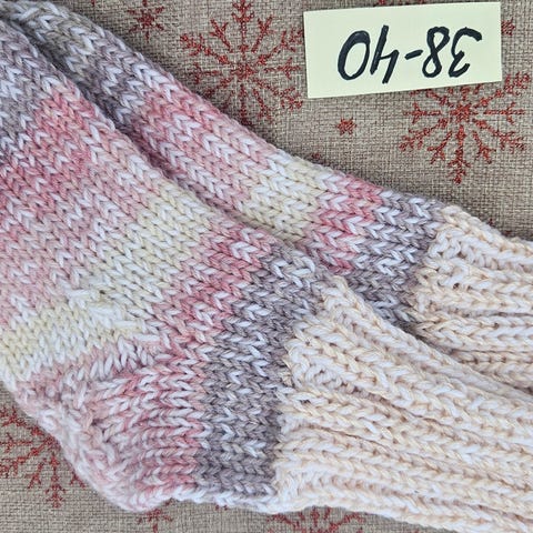 Käsin neulottut villasukat, koko 36-37. villa/ polyamidi sekoitus lanka. Sukkia saa pestää pesukonessa 40 asteessa. Kissatalous