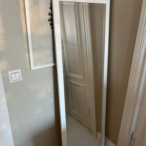 Kolme hauskaa peiliä, jotka vääristävät peilikuvan. Kehykset koivuvaneria, peilien pinta muovia. Peilien takana kaksi ripustuslistaa, jotka helpottavat seinään kiinnittämistä. Peilin voi ripustaa pystysuunnassa molempiin suuntiin. Yhden peilin koko 43 x 98 cm.