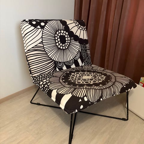 Klassinen lepakkotuoli Unikko-kuosilla. Kangas ja musta kehys sisältyy hintaan. Hyvässä kunnossa, vain pientä käytön jälkeä.