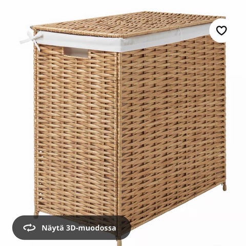 Hyväkuntoinen ikean pyykkikori pyörillä, jaettu puoliksi sisältä joten pyykit voi helposti jakaa. Myyntiin sillä uuteen kotiin ei mahdu kylpyhuoneeseen.