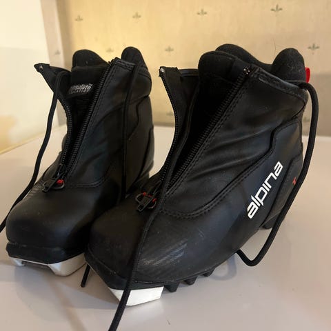 Alpina T5 Plus Jr lasten perinteisen tyylin hiihtomonot, koko 28. Väri musta. Ulkopinta on synteettistä materiaalia, sisäpinta pehmeää kangasta. Pohja on valmistettu kestävistä materiaaleista. Monot on suunniteltu lasten käyttöön. NNN side. Hiihdetty vain koulussa muutaman kerran. Eli kunto on tosi hyvä.