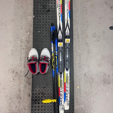 Salomon 191cm sukset SNS Pilot siteillä.Salomon 140cm sauvat ja SNS monot koko 41 1/3.