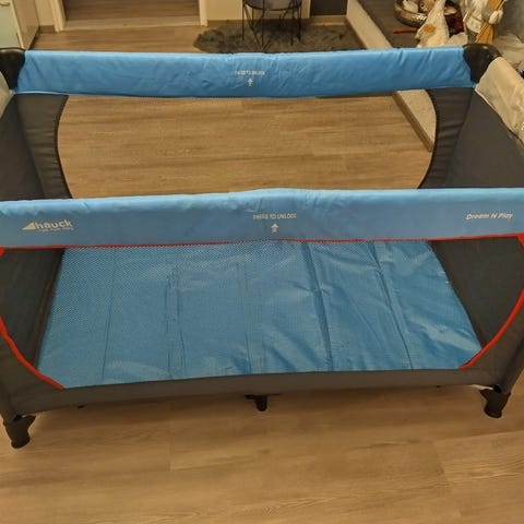 Lasten matkasänky, kaikinpuolin ehjä. Patja mukana (kuva 4)