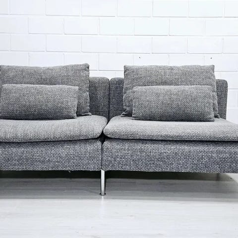 Sohva on hyvässä kunnossa. Päälliset juuri pesty. Päälliset ovat irrotettavat runko myöden. Mitat Leveys 189 cm, syvyys 98 cm. Väri Lejde harmaa