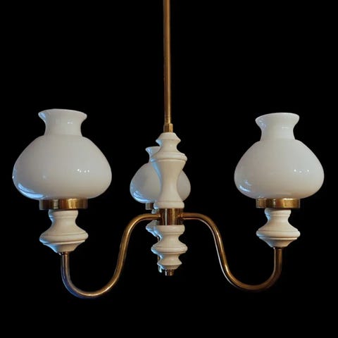 Hyvässä kunnossa oleva 60-luvun 5-haarainen kattokruunu.