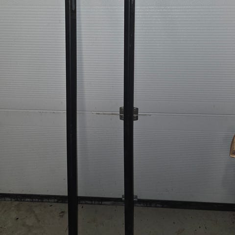 Molempien telineiden muovipinta ottanut pientä osumaa, mutta itse telineet suoria.