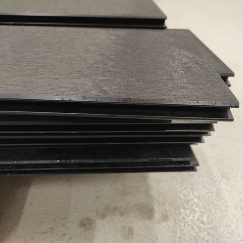 Harmaa komposiittilauta. 25 kpl 4 metriä, 19 kpl 2 metriä.