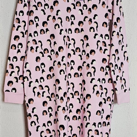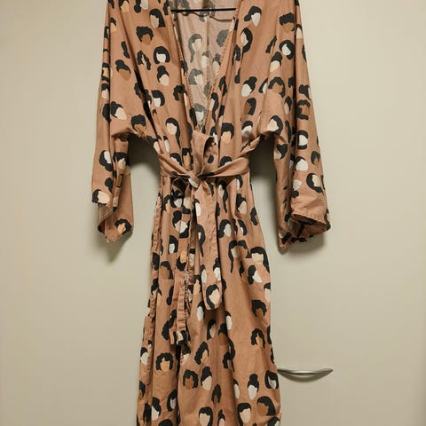 Yo Zen -merkin mekko Heroines-kuosilla, koossa 3XL, midi-mitta. Käytetty kerran ja jäänyt isoksi. Vyötärö tosi reilu, rypytetty, raksamitalla 70 cm, sama kai-kai. Puuvillaa ja elastaania, todella mukava päällä. Myynnissä myös muualla.