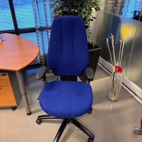 Myydään käytetty Martela Axia-työtuoli värissä sininen. Monipuoliset säädöt.