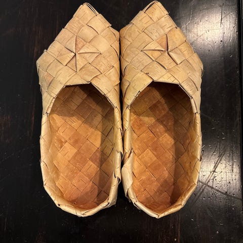 Tummansinistä nahkaa ja puuta. Mukavat kävellä. Uutena ostettaessa maksavat noin 160 euroa.