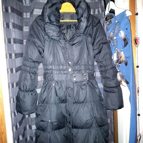 Nätti tumman metsänvihreä Noisy May merkkinen naisten pitkä untuvatakki.