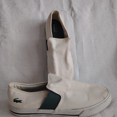 Lacoste kengät koko 44 mutta melko kapeat joten ehkä 43 on oikeampi koko.