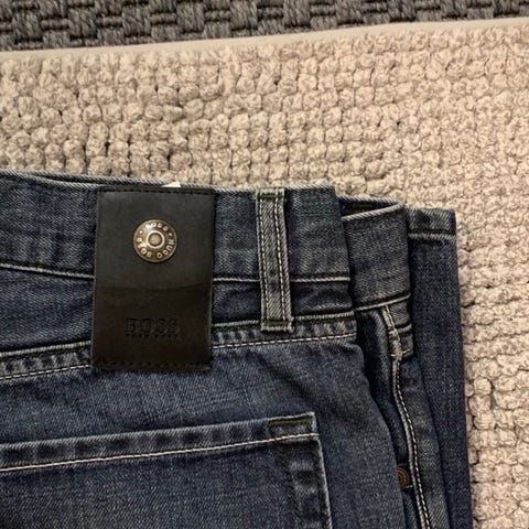 Hugo Bossin farkut ja neule hyvässä kunnossa.