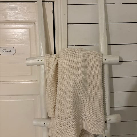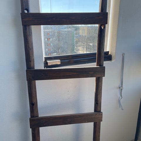 Uusiopuusta tehdyt valkoiset sisustustikkaat. Näkyvissä pientä rosoisuutta jotka kuuluvat asiaan. Tikkaiden korkeus 175 ja leveys 48 cm.Tikkaat ostettu paikallisesta sisustusliikkeestä.
