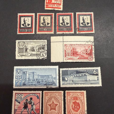 Iso määrä Tšekkoslovakian merkkejä 16-sivuisessa säiliökirjassa, irtomerkkejä pusseissa, sekä kolmessa ”valintavihkossa”, ja muutamalla irtolehdellä liimakkeilla kiinnitettyjä merkkejä. Muutama muukin merkki oli jossakin kohden. Suuri osa on leimattuja, joissa on liimapinta takana. On myös käyttämättömiä sekä osassa on ollut liimakkeet. En ole itse näitä kaikkia tarkemmin tutkinut ja myyn ne sellaisena kuin ovat. Säiliökirjan selkämyksessä on vähän vikaa.
