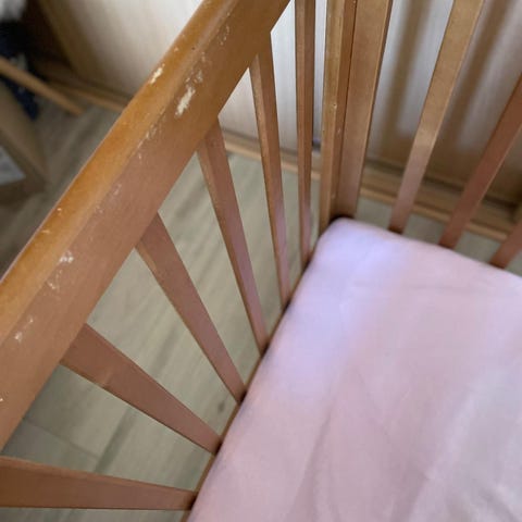 Itsetehty ensisänky rullilla, mitoitettu äitiyspakkauksen patjalle. Patjan saa halutessa mukaan. Siistikuntoinen.