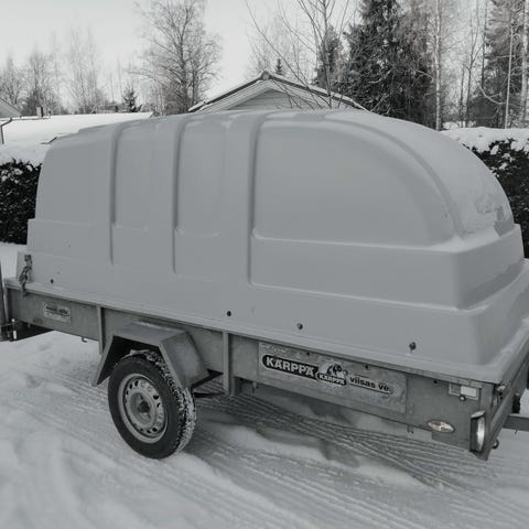 Siitä perus siisti kärry myyntiin, kärry siis tosiaan kipillä. Kärry on teettetty kelkalle noin 15vuotta sitten. Nyky ajan kelkat ei taida mahtua. On siis omavalmiste kärry.