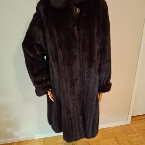 Talviturkki kokoa 38. Sisävuori minkkiä, kaulus sinikettua ja päällys kangasta. Vain nouto. Takki sijaitsee Seinäjoella.