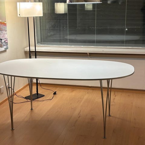 Fritz Hansenin Superellipsi-ruokapöydän ovat suunnitelleet Piet Hein, Bruno Mathsson ja Arne Jacobsen. Pöydän muoto on saanut inspiraationsa Sergelintorin liikenneympyrästä. Superellipsi on ikoninen designhuonekalu, joka säilyy tyylikkäänä vuosikymmenestä toiseen.