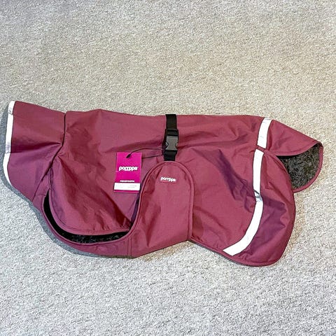 Takki on pesty hajusteettomalla pesuaineella ja karvat tarraharjattu pois. Jokunen koirankarva saattaa silti kulkeutua mukana. ☺️