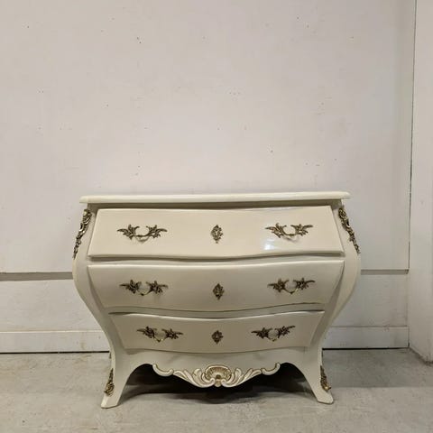 Tämä erittäin hyväkuntoinen Rokokoo tyylin lipasto etsii uutta kotia. Avaimet tallessa ja lukot toimivat. Runko kaikin puolin tukeva. Vetolaatikot toimivat hyvin. Ei hajuja.