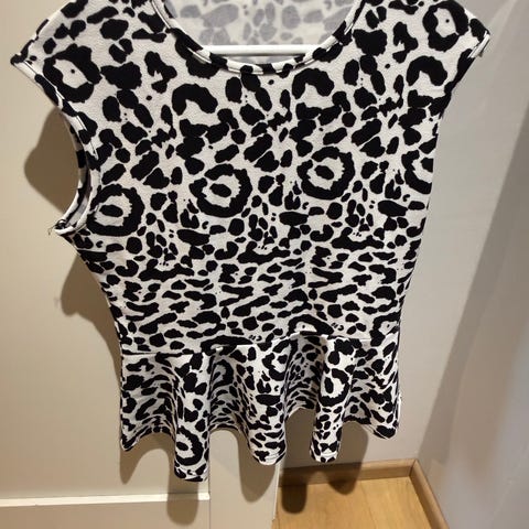 Vero Moda leopardikuvioinen peplum toppi koko L, takana vetoketju, peplum helma, joustava kangas.