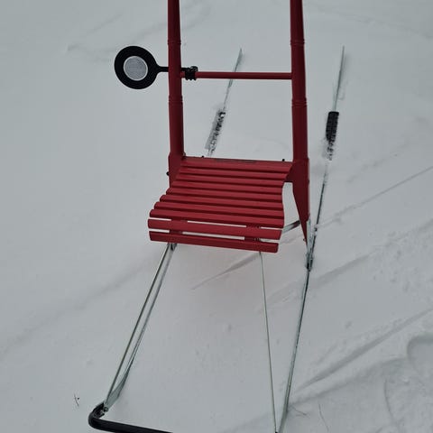 Vähän käytetty, kotimainen ESLA-potkukelkka. Kokoontaitettava. Kelkan korkeus 64 cm. Käyttäjän suosituspituus 100–130 cm. Puuosat koivua, jalakset terästä.