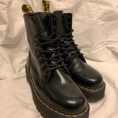 Dr. Martens maiharit, koko 40. Materiaali nahka. Toinen vetoketju lähtenyt hieman liitoksistaan (ks. kuvat), mutta toimii. Käyttäisin kuitenkin vain nauhoja, ettei vetskari ratkea, tai sitten korjauttaisin suutarissa.