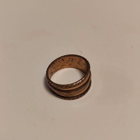 Kalevala Korun pronssinen Karjaan sormus koossa 18,5 seuraavalle. Sisältä lakkaus kulunut paikoitellen, mutta ulkoa hyvin edustava.