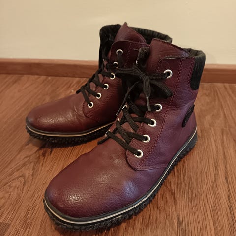 Rieker talvikengät, koko 38, aitoa nahkaa, pinta ehjä, muutoinkin täysin kunnossa. Hyvin vähän käytetty, mikä selviää kulumattomasta pohjakuvioinnista. Kumipohja, jossa kunnollinen kuviointi, sekä lämmin vuori. En postita, nouto Oulusta Iinatista.