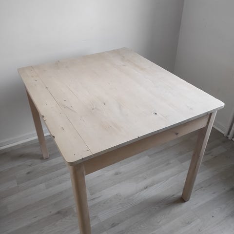 Puinen keittiönpöytä myydään muuton alta. Saa myös tarjota. Haku Kaukovainiolta. Ehkä kuljetus lisämaksua vastaan.