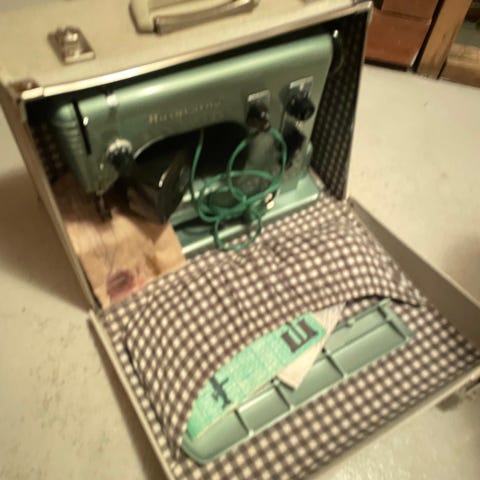 Kone on siisti ja huollettu. Mukana on puolat, paininjalat ja neuloja sekä suojakoppa.
