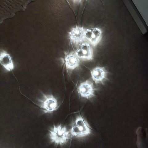 Vaaleat pallot, pitkä sähköjohto, koristevalo joulunkin jälkeen käytettäväksi.