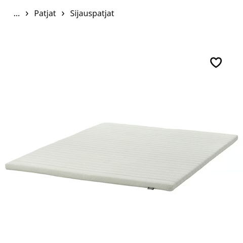Sotkasta ostettu Isabella Relax sijauspatja. Leveys 160 cm, pituus 200 cm, korkeus 9 cm. Ollut n. 8 kk käytössä. Käytetty patjansuojan kanssa. Koiratalous. Uuden patjan ovh 659 €.