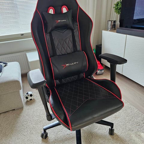 Laadukas pelituoli, Noblechairs. Paras pelituoli palkinnon voittaja. Materiaali laadukasta nahkaa ja mokkaa. Istuinmukavuus täydellinen vaikka päätetyöskentelyyn.