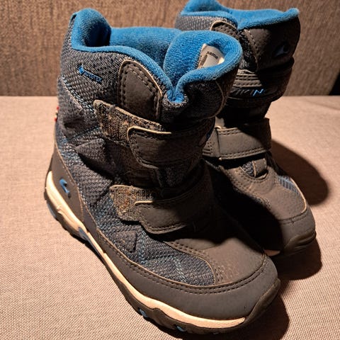 Myydään yhdellä lapsella olleet Viking-talvikengät kokoa 29. Kengät ovat kuluneet jonkin verran käytössä, mutta ovat täysin ehjät.