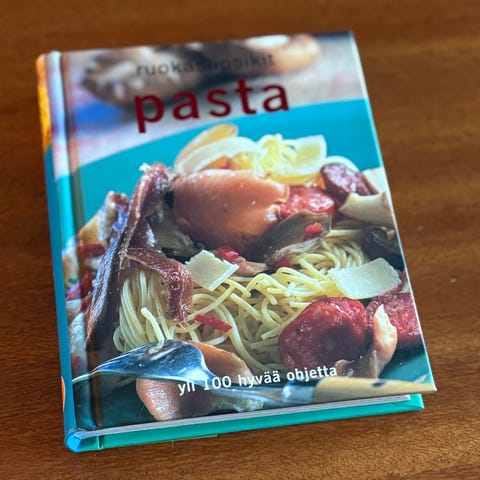 -pasta/pizza/lasagne kirja. Läpi luettu, siistissä kunnossa.