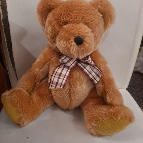 Pehmolelu nalle vaaleanruskea väri, pehmeä materiaali. Kimaltelee.