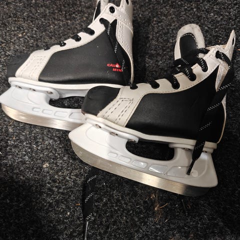 CCM Jääkiekko luistimet, lasten koko 27. Luistimet ovat mustavalkoiset ja suunniteltu jääkiekon harrastamiseen.