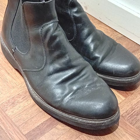Kengissä on nauhoitus sekä sivuvetoketju, jotka helpottavat pukemista. Tukeva rakenne ja paksu pohja hyvällä kuviolla. Käytön jälkiä ja normaalia kulumaa on näkyvissä, kaikki on esitetty mahdollisimman tarkasti kuvissa — kuvat ovat osa kuvausta. Ei vakavia vaurioita, kokonaisuutena siistit ja käyttökelpoiset.