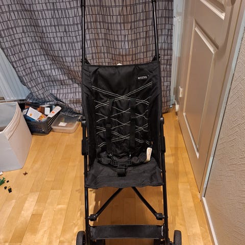Siistissä, hyvässä kunnossa olevat sateenvarjorattaat. Rattaissa on kuomu, tavarakori ja 5-pistevaljaat. Kääntyvät etupyörät, jotka saa myös lukittua.