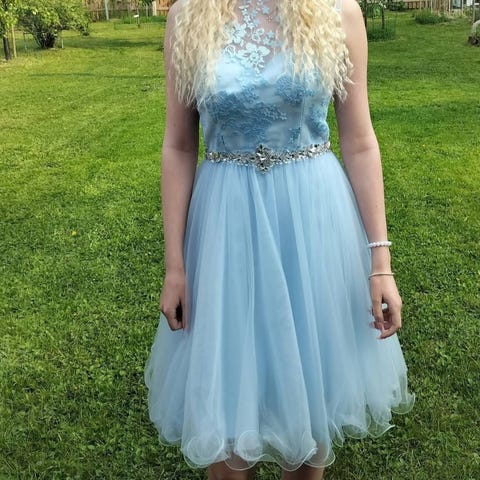 Zazabellan kaunis, vaaleansininen satiinimekko, koko 36.