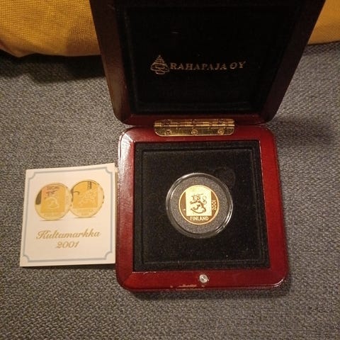 2001 vuoden kultamarkka. Kotelo ja aitoustodistus mukana.