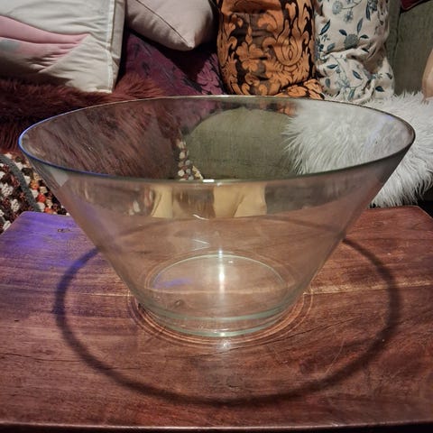 Lasikulho. Halkaisija 28. Korkeus 9.