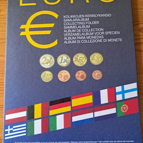 Eurokolikkokansio, jossa 12 ensimmäistä euromaata. Ihan kaikkia kolikoita ei ole, joten nimellinen arvo on 42,01€. Tästä hyvä alku eurokokoelmalle. Rahat kerätty kierrosta.