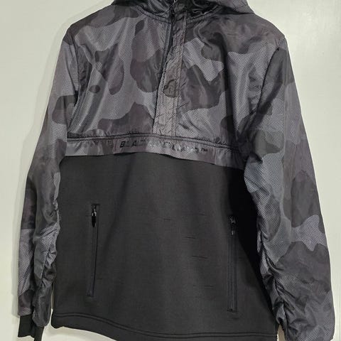 Musta miesten ulkoilutakki, koko M, valmistettu polyesteristä. Takki soveltuu ulkoiluun ja muuhun vapaa-ajan käyttöön.