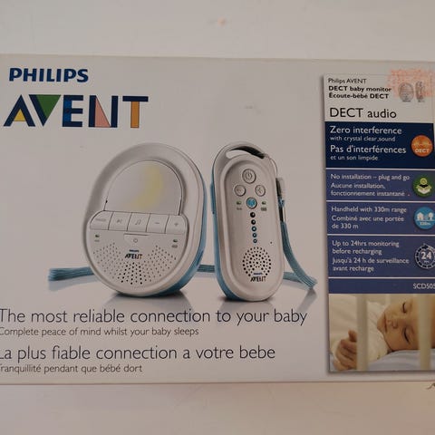 Philips Avent SCD506 vauvamonitori, joka toimii 2,4 GHz taajuudella. Väri valkoinen. Sisältää vastaanottimen ja lähettimen, joissa on ääni- ja valotoiminnot. Laitteessa on äänenvoimakkuuden säätö ja yövalo.